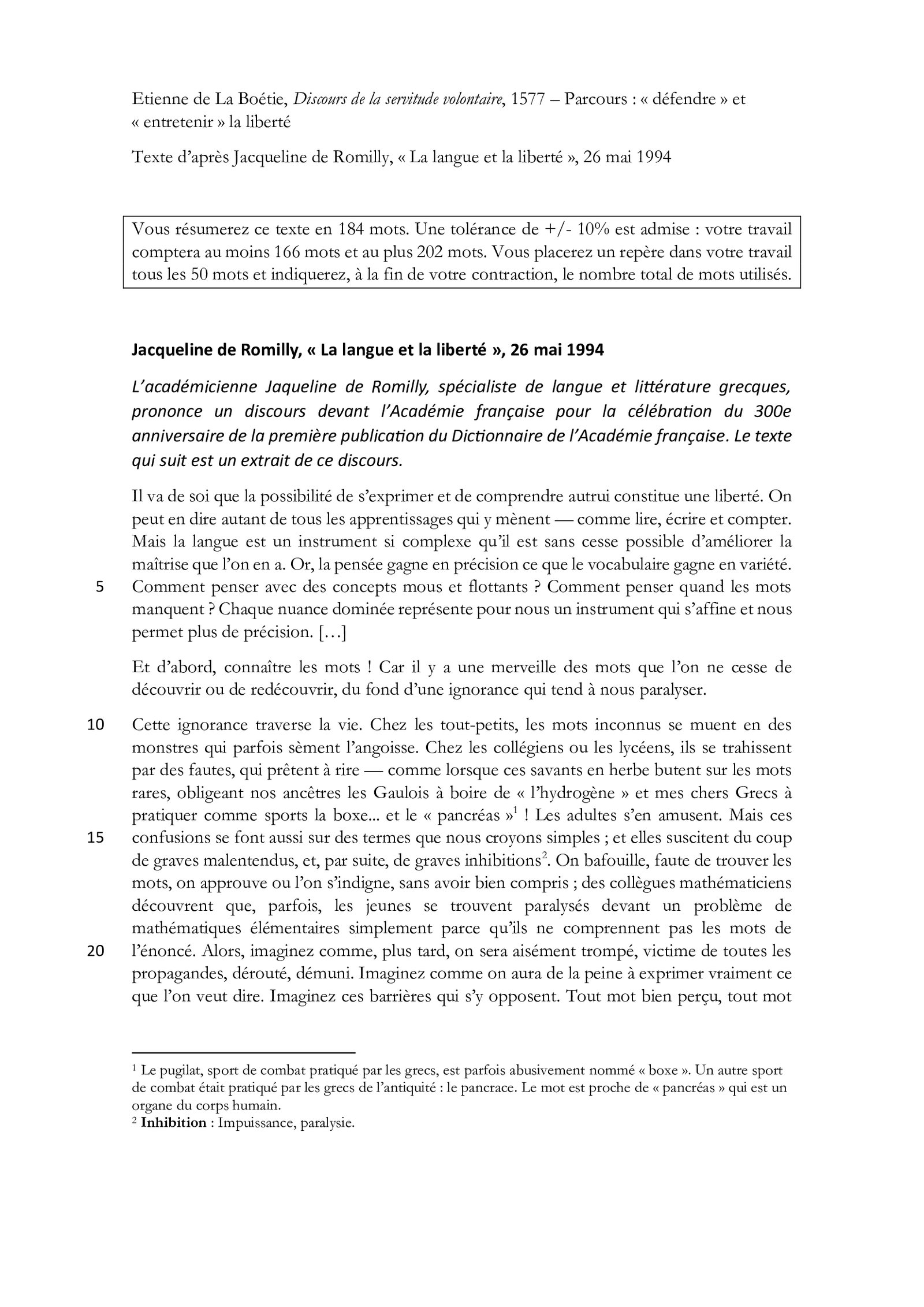 Le texte présenté ci-dessous nous servira de sujet d'application pour exposer la méthodologie de la contraction. Il est à lire attentivement avant de visionner les vidéos.